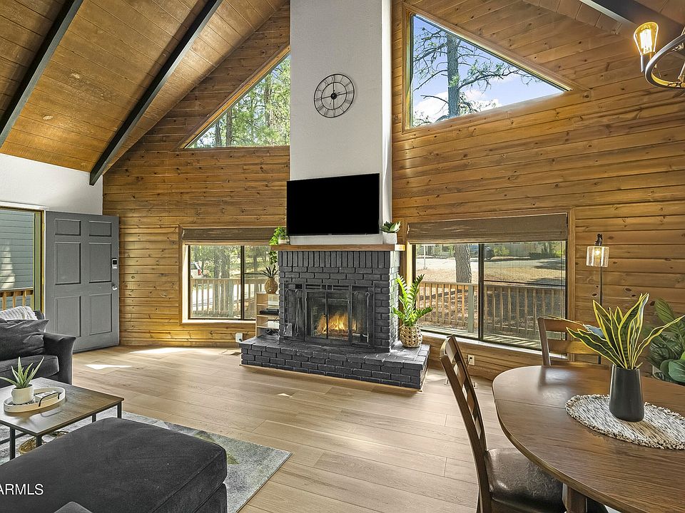Serene chalet with incredible unobstructed forest views. This premium lot sits on a quiet tree lined cut de sac. Enjoy one of a kind views from the wrap around deck.This meticulously maintained cabin showcases brick wood burning fireplace, top to bottom brand new premium vinyl flooring, and updated entertainers kitchen. Fresh exterior and interior paint with newer HVAC system. Fully furnished and ready to go. Come live a life of luxury in the pines!