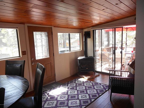 Escape the Arizona heat this summer to this beautiful home located in the cool pines of Pinewood Country Club. The owner has spared no expense in equipping this home with quality pots & pans, knives, and furnishings. Living room is spacious with raised T & G ceilings, gas fireplace. The kitchen is contemporary with black appliances and a huge pantry. The covered and open trex front deck is perfect for those cool summer nights. This home is situated on a heavily wooded lot making it very private. You need only bring your toothbrush to begin enjoying this perfect forest escape. Cable & Internet included.