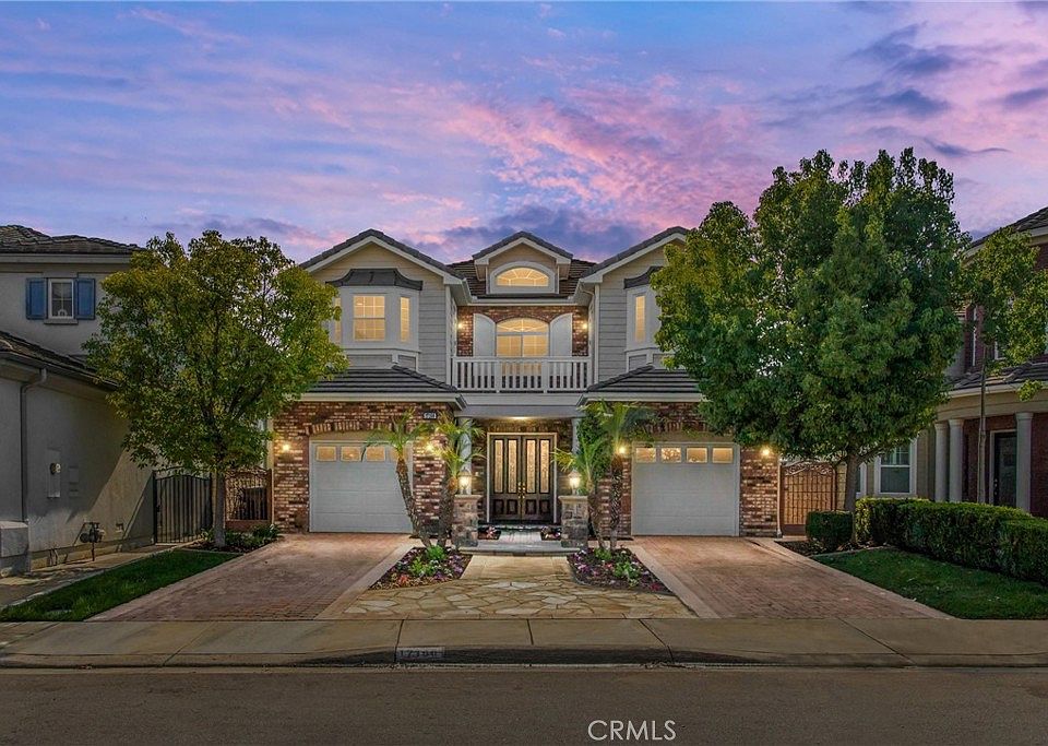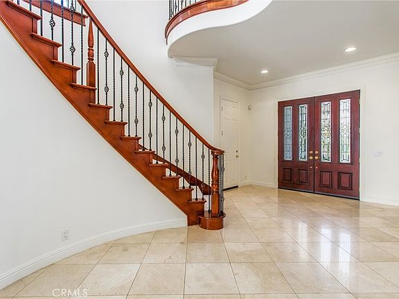 Welcome to this spacious 6BR home nestled on a cul-de-sac in the esteemed community of Vista del Verde. As you step inside, you're greeted by a grand entryway, complete with a captivating spiral staircase and abundant natural light. The main floor features neutral marble flooring, creating an elegant and timeless ambiance. Recent upgrades include brand-new Berber-style carpeting and fresh paint throughout, giving the interior a crisp and inviting feel. Featuring 2 living rooms and 2 dining rooms, there's ample space for both relaxation and entertaining. A cozy fireplace graces the formal living room while the family room boasts a raised hearth flagstone fireplace, perfect for cozy evenings. The heart of the home is the oversized kitchen, with double islands, double sinks, recessed lighting, GE Monogram appliances, incl. a double oven & built-in microwave with warming drawer, under-cabinet lighting, and a built-in desk. The 1st floor also hosts a convenient office space with a large built-in desk and large walk-in closet (possible 6th bedroom.) Main level 1/2 bath for your guests' convenience. Crown molding accents the formal entryway, while surround sound systems in main living spaces makes entertaining easy. The 1st floor also features a bedroom with mirrored closets and an en-suite bath, complete with a glass-enclosed shower. Upstairs, you'll discover a spacious loft area with surround sound and recessed lighting. The master suite is a true retreat, featuring double door entry, a large sitting area with a dual-sided fireplace, & a private balcony with stunning views of Orange County. The ensuite bath boasts a large soaking jacuzzi tub, dual sinks, a sizable shower with dual shower heads, separate toilet area, & a generous walk-in closet. The remaining 3 bedrooms are thoughtfully designed, with two front bedrooms sharing a jack-and-jill balcony & another bedroom just off the loft, each with its own en-suite bath with a walk-in shower. Outside, you'll find a tranquil backyard oasis featuring a custom flagstone patio, a large custom brick fireplace, a BBQ area, a soothing fountain, and spectacular views of the city lights and Disneyland fireworks. Additional upgrades include newer dual 5-ton air conditioning units, newer furnaces, and a whole-house water softener system. Split driveways leading to dual single-car garages. Situated just below the Black Gold golf course, this home provides exceptional living without HOA fees or Mello Roos.