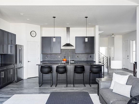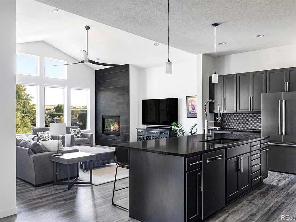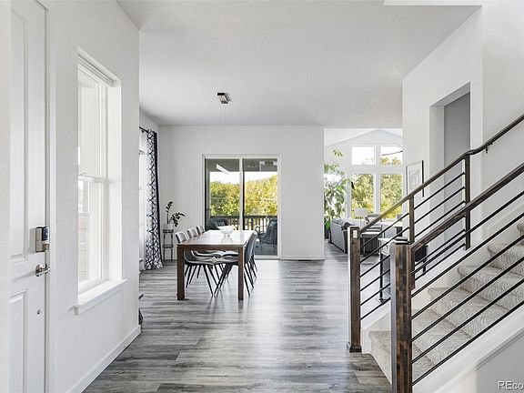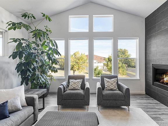 Flourishing with high-end upgrades, this Ulysses Park residence offers a sleek escape in Golden. Enter into a luminous interior featuring upgraded flooring, carpeting, and smart lighting throughout. The chefs kitchen is impressive, with soft-close cabinetry, quartz countertops, and Bosch appliances, including an induction range. A 13 ft vaulted ceiling expands the scale of the living room. In addition, you will find large windows showcasing beautiful trees and foliage, and an oversized, modern ceiling fan. A floor-to-ceiling gas fireplace grounds the living area. Delight in hosting soirées in the dining area or working from home in the light-filled office on the main floor. Retreat to the primary bedroom highlighted by a walk-in closet and an en-suite bath with a luxuriously upgraded shower. Enjoy unobstructed views of South Table Mountain from the quiet primary bedroom. A convenient laundry room features an LG washer and dryer set, and a soaking sink. Take note of the 2nd and 3rd bedrooms, each easily accommodate a king bed. Downstairs, the unfinished basement offers endless potential with rough-in plumbing for a full bath, a full daylight back window and a side egress window. Enjoy outdoor connectivity with two private patios, and a backyard with xeriscaping. An insulated and finished two-car attached garage features a smart overhead door opener. There are numerous additional upgrades including window treatments, a whole-house humidifier, and a high-efficiency furnace. The home is within walking distance of a supermarket, restaurants, breweries, and many of the beautiful trails and parks that Golden has to offer!!