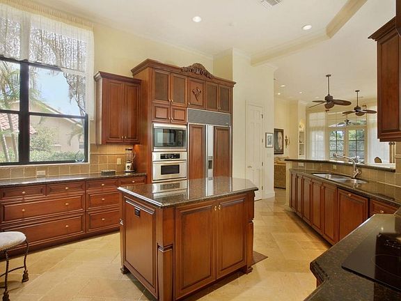 Beautiful European fantasy totaling 9706 Sq’. Be transported as you enter this 6608 Sq’ under air compound with 5 bedrooms. Open the front door to the delight of the interior gardens. The main house has a newly renovated master bathroom as of April 2016. If you have out of town guests, this Mother/Daughter compound is perfect for you. The guest house has 2200 Sq’ that includes master suite, master bath, laundry room, full kitchen, powder room, great room and two 2 car garages! Entire home overlooks the golf course. The property is .74 lush landscaped acre with extreme privacy and fountains. Estate includes the finest interior finishes with imported limestone flooring, home theater, gourmet kitchen with sub zero refrigerators in both homes, volume ceilings and newly refurbished swimming pool. Bocair Coutnry club requires a $60,000 bond and $30,000 initiation fee to move in. For more information please call 561-571-1192