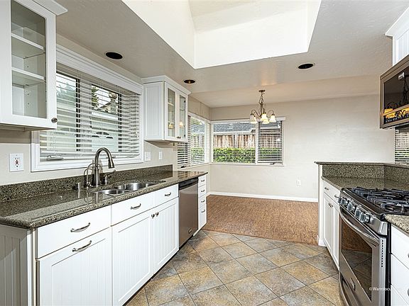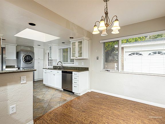 West of 5 - Single story 2 bedroom cottage with detached 2 car garage on approx 7300 sq ft lot. Quiet cul de sac location, house set back from street. Updated kitchen includes stainless sink & appliances plus refrigerator, microwave, & washer/dryer. Skylights in kitchen & bathroom. Back yard has brick patio and bbq. Several fruit trees. Tile floors kitchen & bathroom. Wood laminate floors.
