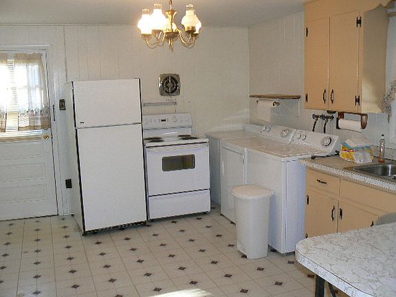 nice home on private lot at edge of Village of Cumberland, range, refrigerator convey, full country front porch, deck, storage building. electric bb heat, newer panel box, metal building for storage outside, nice front yard