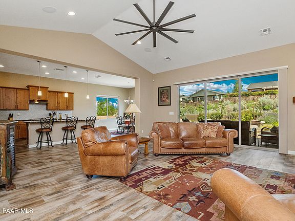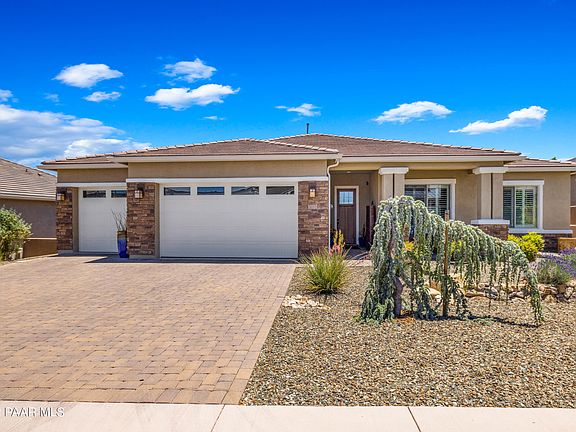 The perfect Prescott Lakes Sonoma Dorn built home with a private enclosed back yard. Step outside to appreciate the views and generous common area. Fall in love with the open concept design featuring modern amenities including quartz counter tops, plantation shutters & many upgrades. The built in garage cabinetry and custom built desk and shelving was just installed . Tile floors throughout the home, stone corner fireplace for those wintry evenings. The home captures the morning sun and is perfectly situated for enjoying the backyard throughout the afternoon and evening. Prescott Lakes is an active club lifestyle with an 18 hole championship golf course, 5 pickle ball courts,2 tennis courts indoor and outdoor pool, athletic club offering extensive classes, workshopa, hiking, yoga etc