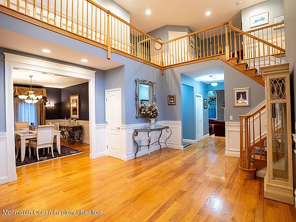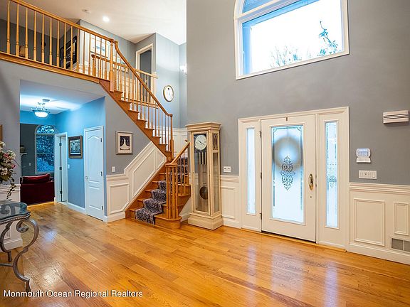 You will be proud to welcome guests through the beautiful, grand entrance into the two story foyer! Wainscoting and molding add a quality finish that carries into the formal dining room. Work from home with the spacious, private office. Play pool, or set up the lovely room with bay windows as a formal living room. Hardwood floors continue into the open floorplan kitchen which boasts a subzero refrigerator, six burner Dacor stove with double oven, warming drawer and new microwave built into the island, new paneled KitchenAid dishwasher. The kitchen also features plenty of room for an expansive table with the turret ceiling eating area, also open to the family room with gas fireplace. Enjoy the second gas fireplace in the master bedroom, his and hers walk in closets, large separate shower...