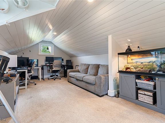 Let's cut right to the chase; this home in Canton South comes with everything. New roof in 2023, A/C in 2023, Sump pump 2023, Pond 2020, Shed 2023, Basement finish 2022, and Furnace 2023. It has an incredible amount of privacy, as it backs up to a friendly farmer. It's light and bright and airy. The owners have loved this home for many years, giving it a gorgeous pond with huge Koi, lush garden, and new, clean shed. It has cohesive flooring throughout giving the open concept layout so much room to breathe. The front room gets loads of light, as you can see by the many thriving plants. Two bedrooms and a full, updated bathroom on the main floor, and a huge room upstairs for a bedroom in the loft. They have used liquid membrane and a sump pump to ensure a dry finished basement where you have extra living space, storage, laundry, and a private office space.