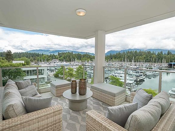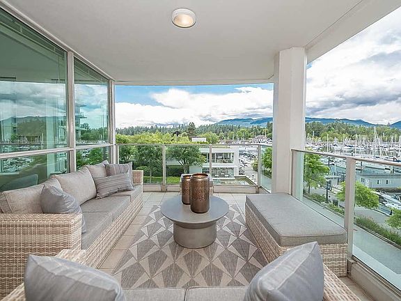 Breathtaking water, park and mountain views from this spacious nearly 1,900 sq ft waterfront home. Bright and open N.W. corner suitE, expansive floor plan that includes 2 bedrooms, 3 bathrooms, gourmet kitchen, gas fireplace, den/3rd bedroom overlooking the world famous Sea wall. Resort style living, steps to Stanley Park, restaurants, retail and the best Vancouver has to offer. Huge private patio, 24hr concierge service, fitness center, 2 parking + locker.