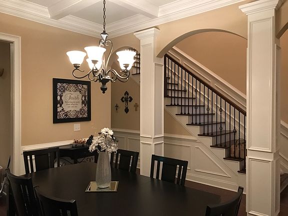 LET'S TALK. MAKE ME AN OFFER. 573-694-9569 MLS#420930 Dream Home on a Corner Lot. Open floor plan with columns. Wonderful eye catching staircase with decorative metal spindles! Beautiful formal dining room with coffered ceiling and wainscoting. Large open family room with wonderful gas log fireplace with hearth and mantle plus built in AV duct for cables. Lovely huge master bedroom suite with double tray ceiling. Master bath has double vanity, jetted garden tub, glass door completely tiled shower, and separate toilet. Large laundry room. Unbelievably never run out of hot water with tankless hot water system. Spray foam insulation creates amazingly low utility bills with attic never 10 degrees different than house temp. Stainless steel Frigidaire appliances. Great counter tops throughout and high snack bar creating extra eating space. Don't forget under cabinet lighting! Wooden blinds in the windows too! The addition of gutters and a fenced in back yard on a corner lot in an awesome family friendly neighborhood make this the greatest show on turf!