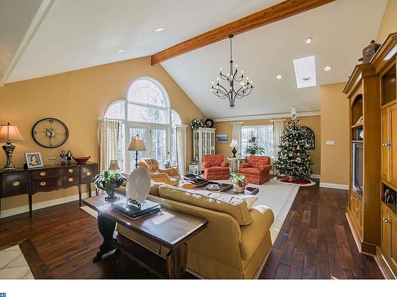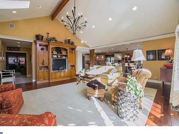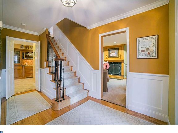 1717 Dillon Road is a stunning over 4000 sq ft home with ample space and beautiful upgrades in every room. It is located on .69 of an acre of landscaped property. A custom slate front walkway and porch lead to the majestic front doorway. Enter to the elegant foyer with hardwood floors and the wrought iron railing stairway. Throughout the home is detailed millwork, built-ins, wainscoting and crown moldings. The Great Room has a cathedral ceiling; hand scraped mahogany floors, a built-in maple entertainment unit with a 40" TV. The french doors and palladium windows look out to the backyard with bluestone and paver patio. The gourmet kitchen is a chef's dream with custom glazed cabinetry, tiled back splash, granite counters with under cabinet lighting, a large island with pendulum lighting, tiled floors and custom window treatments. Other upgraded items such as a Thermador gas range with electric oven, separate warmer drawer, Franke faucets, extra large kitchen sink and prep sink with air switches. Ample storage with a custom pantry, roll-out drawers, and a separate butler's closet. The attention to detail can also be found in the built-in filing cabinets, window seat, bookshelf, bead-board ceiling and hand-made stained glass artwork. A unique glass pocket door separates the kitchen from the elegant dining room with a wood burning fireplace and a beautiful bay window. Enjoy relaxing in the living room with another wood burning fireplace, marble hearth, custom woodwork bookcases and plantation shutters on the windows. The mudroom has built-in cubicles, a large coat closet, and custom window treatments. For additional entertaining, the game room has pine plank ceiling, solid oak beams, window seat and custom window treatments. The fabulous Master Bedroom/Bath Suite has a large sitting area which offers endless possibilities, a gas fireplace, tray ceiling, built-in bookshelves and a large custom walk-in closet. There are three other beautiful bedrooms and a hall bath with new features and fixtures. Connected by a breezeway, the two plus car garage also has easily accessible storage upstairs. New heater and new hot water heater. Blue Ribbon Upper Dublin Schools. Close to parks, shopping and major highways. Not to be missed.