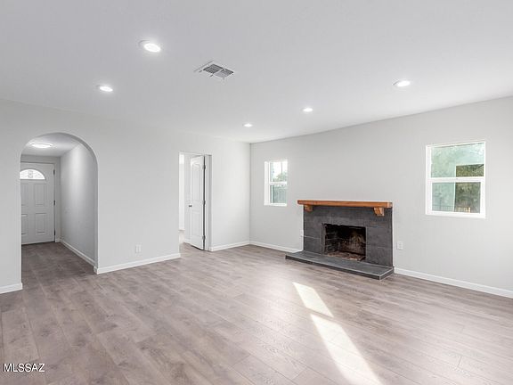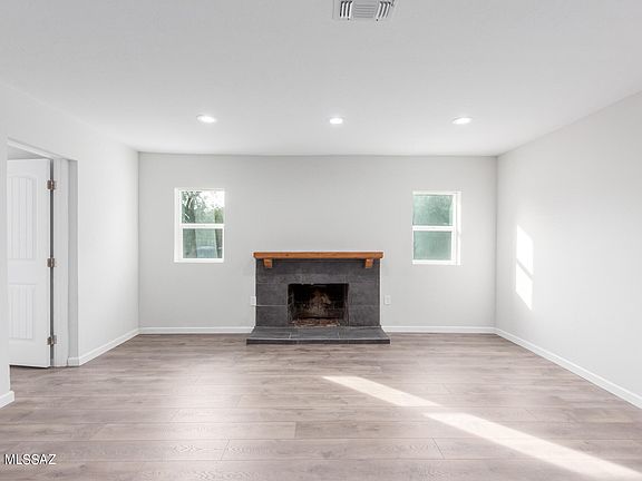 Looking for a new place to call home? This charming 4 bed, 2 bath property with amazing mountain views is the one! Come inside to discover a spacious living area featuring wood-look floors, arched doorways, recessed lighting, & soothing palette throughout. Stay warm & cozy by the impressive fireplace ideal for those chilly nights! The spotless kitchen offers plenty of white shaker cabinets, sparkling SS appliances, quartz counters, & back patio access. Relax after a hard day's work in the primary bedroom showcasing French doors leading to the backyard, a large closet, & a private bathroom. You'll love hosting fun gatherings in the vast backyard with a lovely Ramada, swimming pool, & tons of potential for customizing! Don't miss this fantastic opportunity. Act now!