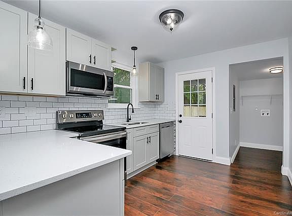 Don't miss this 3B/1B renovated brick ranch w/ a modern flair in popular growing neighborhood. Open floor plan includes new laminate floor throughout. Shaker-style cabinets & white quartz create a light & clean look in the kitchen. An extended counter is convenient for quick meals or workspace. The kitchen, living room & dining room area has been opened up into one large room. Updated bathroom w/ porcelain tile. Low maintenance like a new construction w/ all of the character & charm! Featuring 2020 upgrades: New gutters, interior/exterior paint, new doors, new windows, new insulated ducts, new insulation, crawlspace w/ a new vapor barrier & new brick beams and joist. All new electrical, lighting, plumbing & fixtures, gravel driveway. Large back yard & shed w/ new privacy fence. This home is close to NoDa & Midwood. See all the progress going on now & how hot the area is getting. Perfect for 1stime homebuyer who wants the convenience of living minutes from the city at such a great price