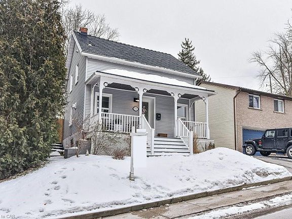 Welcome Home! Are you interested in owning a piece of Hespeler history? This gorgeous two-bedroom, 1.5 bath home is as cute as a button and fully renovated. Located in the Heart of Hespeler, this home has more space than you would think and tons of charm! The large kitchen has newer white cabinets, granite counters, beautiful appliances and direct access to the back yard. There is a formal dining room (or office or home school room!) and a large bright living room with a gas stove that gives off loads of heat! There is also a 2 pc bathroom on this floor so your guests will never have to go upstairs. Conveniently located on this floor is the utility room with laundry, storage, water softener, and the tankless water heater. Upstairs you will find two beautifully decorated bedrooms with closets (rare in a home this age) and a fully updated and gorgeous bathroom that managed to efficiently use every ounce of space. The basement is a typical older home basement and is great for storage but can't be finished. The backyard is fully fenced, has a deck, a shed with hydro and tons of privacy! The house even has gutter guards to make fall clean up a breeze! The driveway can accommodate three cars. This home would be a terrific option for first-time homeowners, downsizers, people looking for an investment property! It is close to all amenities and public transit!