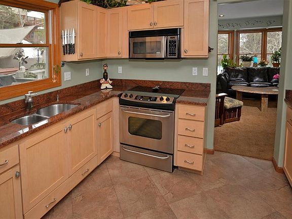 Charming home with private location and ambiance inside and out! Lovingly built by builder owner with attention to quality construction: radiant heat, Anderson windows. Setting away from HWY, close to bus stop, parks, and bike path. 2 living areas each with river rock gas fire places. Mother-in-Law Suite with garden entrance. Beautiful finishes include granite and marble counter tops & maple cabinets. 2 newly remodeled bathrooms. Beautiful outside space with water feature off a very private deck. This is a duplex home.