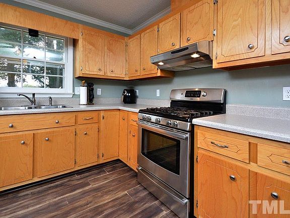 Welcome Home to this lovely North Durham ranch perfectly nestled on .46 acre lot. 3 bed, 2 bath with utility room, kitchen with gas range, dining room, entry foyer, patio, covered front porch and 1 car detached garage. New roof, newer hot water heater. All appliances convey. Many recent upgrades. Master features dual vanities and completely redesigned closet. Good counter/cabinet space in the kitchen. Fenced back yard. New flooring throughout.