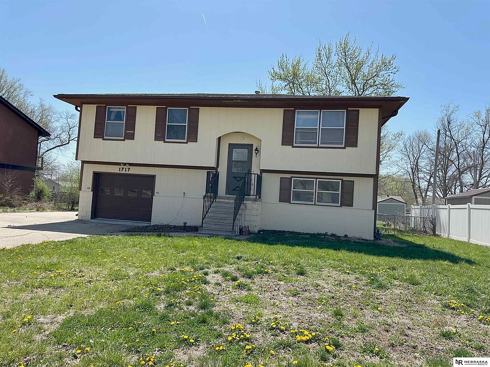 Welcome to this inviting split foyer home nestled in the sought-after Northeast area of Beatrice. Featuring three bedrooms, it offers a generous layout complemented by a spacious fenced backyard. Within the past four years, significant upgrades have been made, including a new roof, gas water heater, bathroom vanity faucet, tub/shower faucet, and new LVP flooring. The kitchen has been tastefully renovated with fresh countertops and cabinets, enhancing the overall appeal. Step outside to discover a charming patio nestled beneath a picturesque deck, perfect for hosting outdoor gatherings. Rounding out this property is an additional parking pad adjacent to the driveway, providing convenient space for extra items.