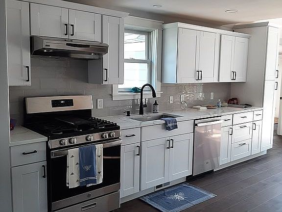 Virtual tour at: https://youtu.be/uJHVNulmjjw This charming 3 bed 2 bath home in the coveted section of West Belmar has been recently updated as of May 2022. Recessed lighting showcases hardwood floors throughout. Home has newly painted interior along with trim. The kitchen has all new: shaker cabinets, backsplash, GE stainless steel gas range/oven, GE dishwasher, elegant quartz countertops and Anderson window above 33" stainless steel sink. Updated main bathroom with new vanity, tile flooring and tile above new tub. Primary bath has also been updated with new vanity, new tile flooring and newly tiled walk in shower. All three bedrooms have vaulted ceilings, as does the skylighted breakfast nook/office area, which is additionally illuminated by the double glass doors which invite you out to the relaxing back deck. New Anderson windows have been installed in Living/dining room along with shiplap feature above fireplace. Enclosed laundry closet with new Samsung Champagne Washer & Gas Dryer with quartz countertop for folding clothes. Gas heating and central AC for perfect interior temps. Public Water and Sewer. Unfinished basement. 500sq ft attic via pull down stairs has potential as loft. Exterior of house has been updated with new Hardie siding, cedar shake accent and stunning white trim. Property has been newly landscaped with lovely perennials flowers, boxwood and rose bushes, sea grass and a delightful pink dogwood just off the newly refinished brick riser and bluestone tread front entrance. Not to be forgotten is the (approx.) 750sq ft. back building, which now has new French doors to lead you to a future: yoga retreat, office space, in law apt. or cabana. Fully fenced in large backyard for your pets to enjoy and which already has a precious garden area to grow your own vegetable delights. Very family oriented neighborhood. Spring Lake and Belmar Beaches equidistant to the house, just a short bike ride away. Shopping is a 2 minute drive or about a 5 minute walk to groceries or Pharmacy. Elementary school is less than two blocks away. Belmar Marina and Spring Lake Ocean Front Dining just minutes away. NJ Transit and parking also a 5 minute drive away.