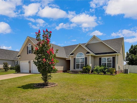 Immediately available FOR LEASE! Look for the RED door! This home has 4 Bedrooms and 2 full bathrooms and is ready for a new family to enjoy. Home has newer LVP, carpet and tile flooring, neutral paint colors, stainless steel appliances, a fenced in backyard, and it allows 2 pets! The main area of the home features a large foyer leading into an open floor plan with vaulted ceilings, eat-in kitchen/living area with a fireplace in the living area and double doors to the beautiful wooden deck. The first floor has a centrally located laundry room, that includes a washer and dryer. The laundry room leads to the 2-car garage. The spacious master features trey ceilings, large walk-in closet, jetted tub, shower, dual vanities and a separate toilet room. There are two other large bedrooms downstairs, and the 4th bedroom upstairs is a fully finished "bonus" with a closet. The home is close to dining, entertainment, shopping, schools, and only 20 minutes to Fort Liberty! Pets are allowed for a $25 monthly pet fee per pet and a $250 refundable deposit. Max of 2 pets. No dangerous breeds: breeds are listed in the covenants and restrictions. Pets must be registered and inoculated. There are covenants and restrictions for the subdivision and a $240 yearly HOA fee that must be paid with the first month's rent. Come see this home before it's gone!