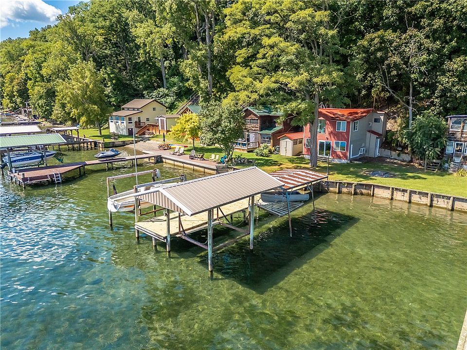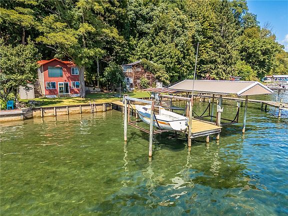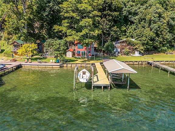 A LITTLE SLICE OF WATERFRONT HEAVEN ON SENECA LAKE WITH 50' OF PRISTINE LAKE FRONT WITH A BREAKWALL & PERMANENT DOCK! THIS PREMIER WEST SIDE OF SENECA LAKE LOCATION IS TUCKED AWAY DOWN LOG CABIN ROAD WITH AN ADIRONDACK FEEL FOR TOTALLY SERENITY, THE PERFECT PLACE TO GETAWAY. ENJOY TOTALLY UPDATED WATERFRONT LIVING WITH A COMPLETELY RENOVATED COTTAGE, ALL YOU HAVE TO DO IS MOVE IN & ENJOY THE LAKE. THIS NEWLY RENOVATED COTTAGE FEATURES PHENOMENAL OPEN LIVING WITH A WHITE & BRIGHT KITCHEN OPEN TO THE WATERFRONT VIEW DINING & SPACIOUS LIVING AREA, ALL WITH LUXURY VINYL FLOORS & A SLIDING GLASS DOOR! THE UPSTAIRS FEATURES THREE BEDROOMS WITH LUXURY VINYL FLOORS, A GORGEOUS BATHROOM & A PRIMARY BEDROOM WITH THE BIGGEST WATERFRONT WINDOW... ENJOY WAKING UP RIGHT ON THE LAKE! ADDITIONAL UPDATES IN NEW STAIRS, PERMANENT DOCK DECKING, SEPTIC SYSTEM, ELECTRICAL, SELECT SIDING & WINDOWS & MORE! UNBELIEVABLE SETTING ON LOG CABIN ROAD POSITIONED ON A LARGE POINT WITH BREATHTAKING VIEWS FOR MILES! PHENOMENAL FINGER LAKES LOCATION, ALSO KNOWN AS THE NAPA VALLEY OF THE EAST WITH WINERIES MINUTES AWAY & EASY ACCESS TO GENEVA WITH THE NYS THRUWAY & WATKINS GLEN! DELAYED NEGOTIATIONS 9/12 @ 11AM.