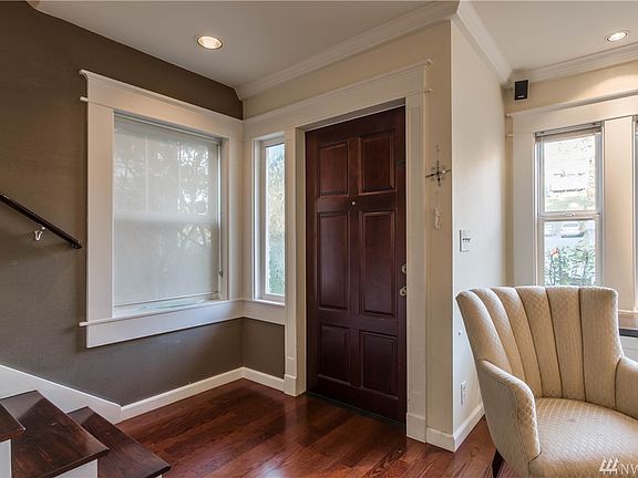Superb Downtown & Eastside commute - bike score 78. This end unit townhome has ideal balance of livable space, location & comfort. Upgraded finishes throughout, incl hardwoods, recessed lighting, craftsman trim work & crown moldings. Main floor living, dining, kitchen, half bath & util rm + private front/back yards & storage shed. Upstairs has 2 spacious bdrms, full bath, walk-in closet or den/office? Off-street pkng. On Metro line 4, 8 - 8 blks from Central LINK & East LINK (in 2023). Must see!