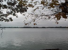 Great Lake Manitou view. Older home on Lake Manitou that needs updating. Brick fireplace in living room. Duke Natural