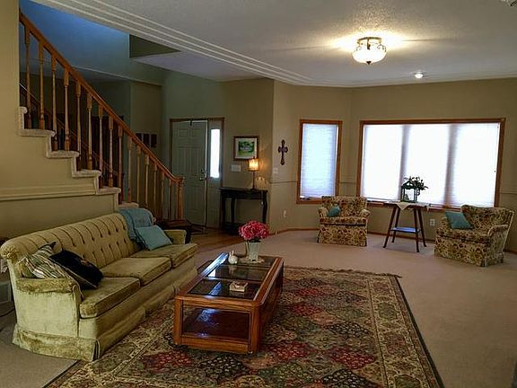 This charming two story home with welcoming porch features the hard to find 4 bedrooms on one floor! The home's floorplan has a great flow with a grand entry, private office with French Doors (currently used for formal dining) living room with area for formal dining, spacious kitchen with doors to deck, and laundry all on main floor. Upstairs you will find four large bedrooms total, a full bath and luxurious master retreat with a gas fireplace, jetted tub, shower and his and hers sized closet. The walkout basement is expansive! If you need a large entertaining space this basement has it. The basement has another full bath and an oversized nonconforming bedroom. Walk out to the private yard with beautiful perennials, mature trees, a sprinkler system, terraced flower beds and backyard is surrounded by a 6' wood fence. This quality home is located in northwest Bismarck on a quiet street close to so many amenities.