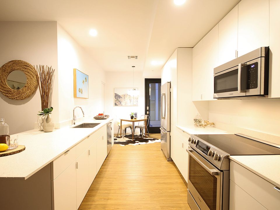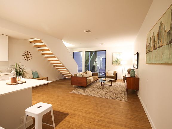 This is the most unique/cool "B" model in artHAUS. It's on the corner of the community so has great view corridors beyond artHAUS to both the north and south. The floor plan is super open and bright with great floor to ceiling windows pushed up against the walls that wash the rooms in reflected (indirect) sunlight. artHAUS was designed and developed by local architect Jason Boyer. He's best known for being the head architect for the two high rise towers in downtown Tempe, West Sixth. The guy knows his stuff and you can really see the pride he took with this community.