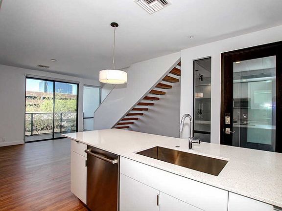 Gorgeous architecture and the midtown lifestyle come together in this smartly designed, urban loft condo. Attractive space on the first floor with a light, neutral palette and gorgeous wood look flooring. The kitchen offers new SS appliances, sleek cabinets and granite counters, plus breakfast bar. Nice sized covered balcony, perfect for enjoying endless blue skies. Spacious bedroom loft upstairs offers picture windows, stack washer/dryer closet, fantastic bath with sleek design all over, from the vanity sink and the tile surround shower/tub combo. Gated parking garage with one space. Great area, minutes away from Phoenix Art Museum, other entertainment and several restaurants, plus all the amenities downtown Phoenix offers is just a light rail ride away!