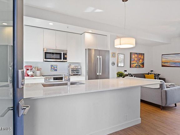 Energy efficient modern living in downtown Phoenix. A short walk from the light rail, & adjacent to Willo Historic District, this natural ;ight filled artHAUS condo offers the best in urban living. Open concept layout with smart storage, a modern kitchen with quartz countertops, SS Bosch appliances, & large prep/sitting island that opens to the bright living room with sliding doors to your back patio. Room for a king size bed, full size washer/dryer. Custom California Closet! 1 owned garage space with additional storage locker! Walk/bike/rail to food festivals, restaurants, theaters, museums, libraries, galleries, sports, ASU & more. ARTHAUS: A small community of 25 condos is a steel, concrete, smooth EFIS & glass masterpiece designed to meet/exceed LEED standards.LED lighting.. modern insulation & materials, & recessed window exposure for low energy consumption. Individual electric car charging avail. Designated, secure bike parking w/repair rack & air station. Gated garage/community. Individual EV charging avail.