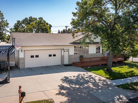 Come see this well taken care of ranch style home featuring three bedrooms and laundry on the main floor! You will immediately notice the hardwood floors as you enter the living room. The dining room and kitchen area has lots of cabinets and built-ins for storage and display. The main floor of this home offers you main floor laundry plenty of room for the three bedrooms. The primary bedroom has a bathroom attached. The main floor also features a large full bathroom. Downstairs you will find an additional bedroom, and newly remodeled bathroom. The basement also features a large family with a wetbar for entertainment options. Plus, additional large storage room complete with shelving. As you walk around the home you will notice the large completely fenced backyard on this corner lot, a garden shed, camper pad next to the garage, steel siding, large front deck and back patio area, and many newly planted trees. Garage is heated and has cabinets for storage and countertop for workspace. Outside AC unit was replaced in 2021. Schedule an appointment today!