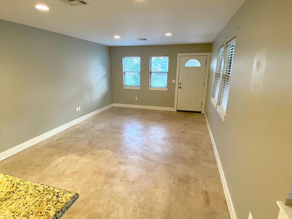 Walking distance to the Plaza! Great newer construction duplex with a full 2 bed, 2 bath. All appliances included including a stackable front loading washer & dryer. Carport for parking. Granite countertops and concrete flooring throughout. Nice, new and clean!