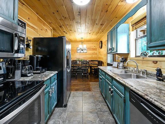 Dreamy 2 bedroom (with bonus bedroom) mountain retreat perfectly situated halfway between Gatlinburg and Pigeon Forge in the Sky Harbor Subdivision with a low HOA fee . This completely remodeled 3-bedroom, 2-bath cabin, offers ample space for up to 8 guests. All three bedrooms are conveniently located on the main level, including a master with a king bed and ensuite bathroom featuring a tub/shower combo. Step outside to the great outdoor area with distant mountain views, where guests can unwind in the hot tub or gather around the fire pit for memorable nights under the stars. Tucked away in a private cul-de-sac, this cabin offers tranquility and privacy. Guests can enjoy access to three stocked fishing ponds within the HOA. Fully furnished and turn-key, with spacious parking.