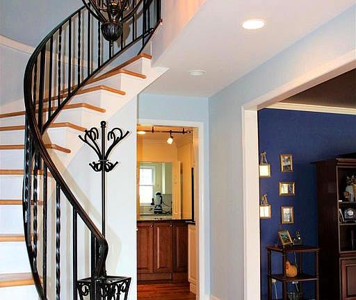 - Kitchen Island, Pantry, Recessed Lighting, Walk-In Closet(s), Dining Area, Crown Molding, Open Floorplan, Attic, Wainscotting, Kitchen - Country, Formal/Separate Dining Room, Master Bath(s), Upgraded Countertops, Family Room Off Kitchen, Chair Railings, Curved Staircase
