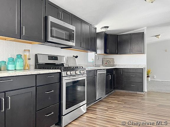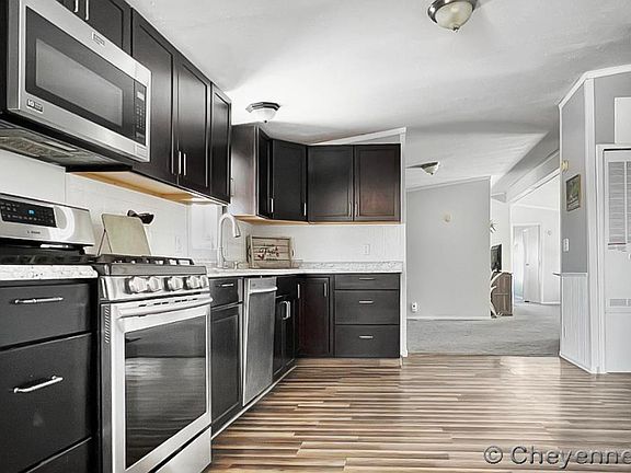 Lots of space on close to 10 acres to spread out, no covenants. Beautiful Wyoming space to call your own! Don't miss out on this updated 4 bed, 3 bath home with over 2000 sq feet! Acreage is fully fenced, with a small koi pond, a dog run and round pen for your horses! Lots of sheds for storage and projects.