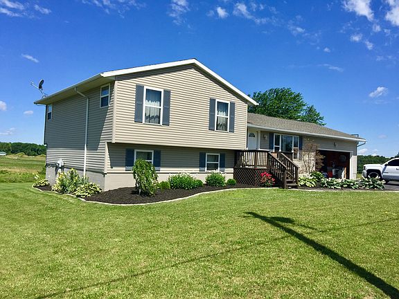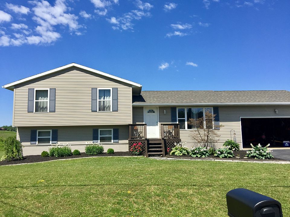 Beautiful well kept home with 4 levels. New roof & front porch in 2015, All new stainless steel appliances in kitchen in 2015, new Laminate floors throughout main level in 2016, upgraded water filtration system 2012, Blacktop driveway with 8 parking spots in 2012. Neutral colors throughout home. Freshly landscaped for great curb appeal. Family room on lower level, rec room and laundry/ storage area on basement level. Back deck overlooks rural setting. Ontario Schools. Approx. 3 acres of land