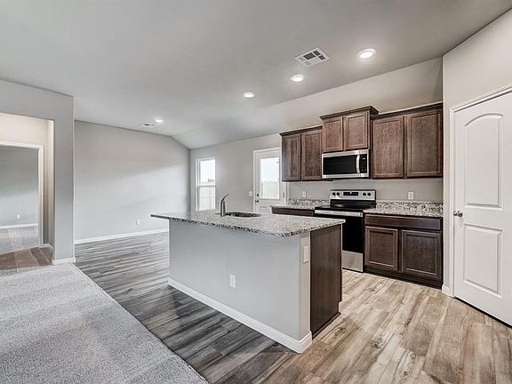 Boasting with charm, this single-story home in El Reno has plenty of space that growing families will appreciate. This four-bedroom home hosts two full baths, a spacious family room, chef-ready kitchen, private master suite with an en-suite bathroom and an abundance of included upgrades. Enjoy the thoughtfully designed, open-concept layout that creates the perfect space for entertaining. Here, impressive upgrades galore. Included at no extra cost, you will want to see for yourself how the energy-efficient Whirlpool® appliances, sparkling granite countertops, designer wood cabinetry with crown molding and a Wi-Fi-enabled garage door opener are included at no extra cost to you!