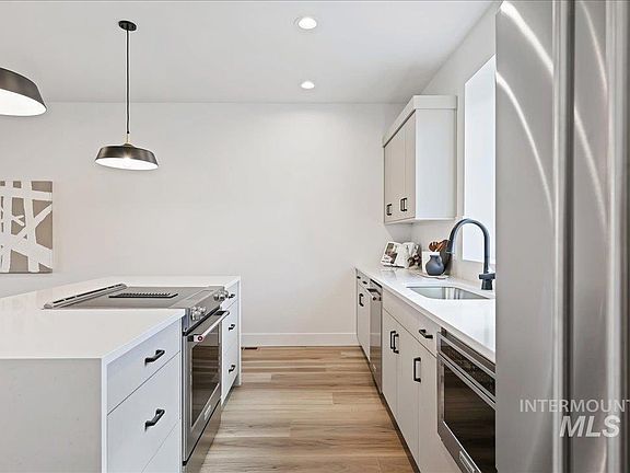 Contemporary comfort in a prime Boise Bench location. A rare opportunity to own new construction just minutes from Boise State, Downtown & Micron. This stylishly appointed residence blends low-maintenance living with thoughtful design & upscale finishes throughout. With three spacious bedrooms each with a private ensuite bath the layout offers flexibility for modern living, extended guests, or remote work. Soaring ceilings & expansive windows radiate the interior with natural light, highlighting custom cabinetry, designer fixtures & wide-plank luxury vinyl flooring. The gourmet kitchen is anchored by a waterfall-edge quartz island & equipped with a premium KitchenAid® appliance package & a large walk-in pantry, all overlooking the open great room & patio.The lower-level suite offers ideal separation for a home office, studio, or guest quarters, while the spacious two-car garage provides secure parking & additional storage. Whether it’s a lock-and-leave lifestyle, long-term investment, or short-term rental potential, this home offers exceptional versatility. Located within Midtown Heights, a boutique collection of 35 newly built homes by Tresidio Homes, a trusted local builder known for elevated design & quality craftsmanship. Designed for easy living, the community offers professionally managed landscaping & exterior upkeep through the HOA