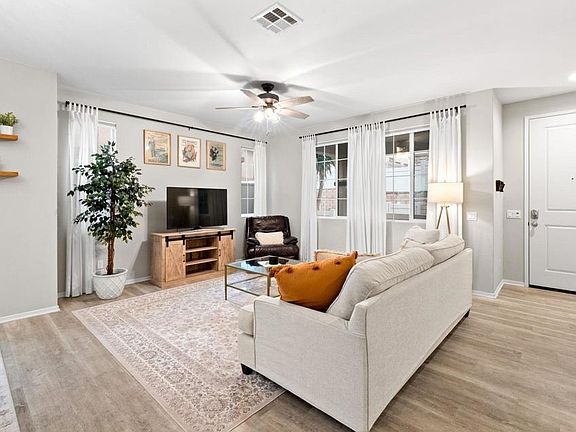 New Price! Don't miss out! VA Approved! Discover the perfect blend of style, comfort, and convenience in this beautifully upgraded 3-bedroom, 2.5-bath townhome and TWO car garage located in the highly desirable Montecito community of Otay Ranch. Built in 2019, this modern home offers an open-concept layout with sleek vinyl flooring, updated cabinets, and a spacious living area designed for both relaxation and entertaining. The gourmet kitchen features contemporary cabinetry, stainless steel appliances, and ample counter space, making meal prep a breeze. Upstairs, the primary suite boasts a walk-in closet and an en-suite bathroom with dual sinks and a glass-enclosed shower. Two additional bedrooms, a full bath, and a convenient laundry room complete the upper level. This smart home is equipped with a central A/C system that can be controlled remotely for year-round comfort. The attached two-car garage includes an installed EV charger and custom storage racks, adding to the home's efficiency and organization. Located in a vibrant community with access to Montecito Clubhouse with multiple pools, parks, playgrounds, basketball and pickleball courts, and a full fitness center. Multiple schools all within walking distance. Don’t miss this opportunity to own a beautifully upgraded townhome in one of Chula Vista’s most sought-after neighborhoods!