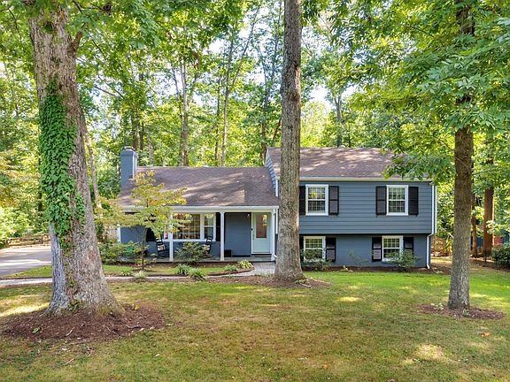 Welcome to this spacious and updated 4-bedroom, 3-bath home! As you enter the bright foyer, you'll be greeted by beautiful slate flooring. Hardwood floors can be found throughout the main living spaces and bedrooms, giving a warm and inviting atmosphere. The family room boasts a charming brick fireplace, perfect for cozy evenings. The dining room showcases elegant wainscoting. The kitchen has been updated with slate flooring, new stainless steel appliances, granite countertops, tile backsplash and white cabinets. The second floor features the primary bedroom with an attached bath, two other bedrooms and a full bath, while the basement includes an additional bedroom, rec room, and a third full bath. All bathrooms have been tastefully updated. Outside, you'll find a large private fenced yard with a 12x24 screened-in porch with Trex decking, a patio with pergola, and a fire pit. A new shed provides extra outdoor storage space. The brick and siding were painted in 2020, and the windows were replaced in 2012. Additional storage can be found in the walk-up attic, unfinished basement space, and the shed. This home is conveniently located near the Shops at Stonefield and 29, with easy access to downtown.
