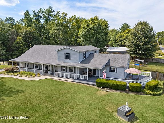 Motivated Seller! LENDER INCENTIVE- qualified buyer to choose funds toward closing costs OR rate buydown. Step into this beautiful, turnkey home spanning 4,506 sqft. This 5 bedroom, 3 full and 2 half bath home sits on a 1.69 acre lot. Built in 1937 with a huge addition and many updates in 2010, this home is like new. Additional upgrades since 2023- new LVP throughout, interior paint, lighting, ceiling fans and custom woodworking in the kitchen & dining. Both HVACs were replaced in 2023 and are high efficiency. All bathrooms have been updated. The kitchen includes GE Monogram appliances, a Cafe range, custom glass tile backsplash, pantry cabinets and built-in desk area. The list of updates is extensive! Step through the front door to a large foyer that opens into a massive great room- a perfect space for entertaining. There are 2 primary suites (one on each floor) as well as 2 kitchens. A flex room on the 2nd floor can be used as a nursery or office. Stainless steel appliances remain. All included appliances and thermostats have WIFI smart home capabilities. The wraparound porch is perfect for hosting gatherings. A detached garage, with lean-to, offers parking, tons of built-in storage and a workshop. 4 min to I-65, 25 min to the KY Ford plant, 14 min to Amazon Center- this is a centrally located property. Don't miss your chance to call this property home and enjoy a haven surrounded by nature while staying connected to nearby cities.