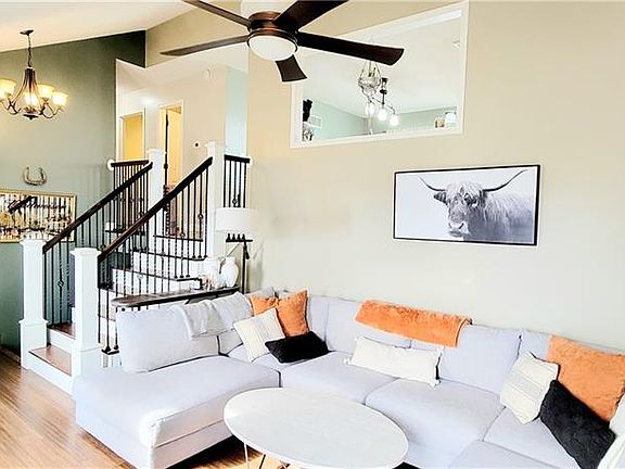 Gorgeous vaulted ceilings, bamboo flooring, granite countertops and custom paint are just a few of the numerous upgrades found in this well-designed home. True 3-bedroom, 2.5 bath home home with 2 additional spaces on the lower level that could be used as 4th & 5th non-conforming bedrooms or second family room & rec room. The cook's kitchen boasts under-cabinet lighting, custom cabinetry, eat in dining space and granite counter tops. The spacious primary suite includes a walk-in closet and a custom tile shower with bench seat, in-shower lighting, and an upgraded modern shower head. The primary bath also has granite countertops with double lavatory sink bowls and extra cabinetry. The large back yard is lined with a white 6ft vinyl privacy fence and includes a 16x10 shed for additional storage or small animals such as chickens or rabbits. The home comes equipped with an oversized garage that features epoxy flooring, built-in storage, and a workbench. The home is within walking distance to Ridgeview Elementary.