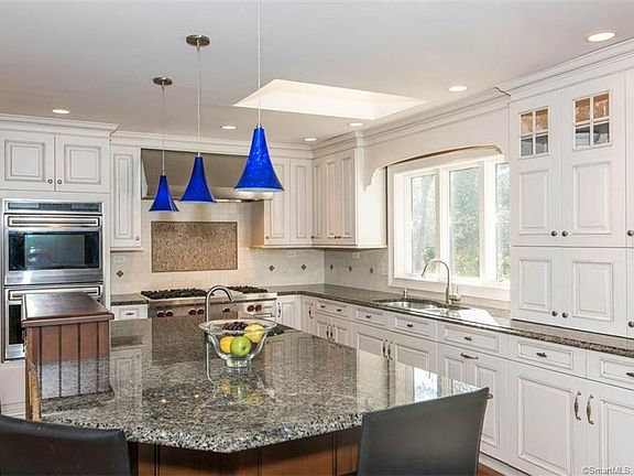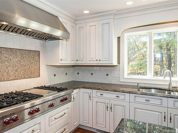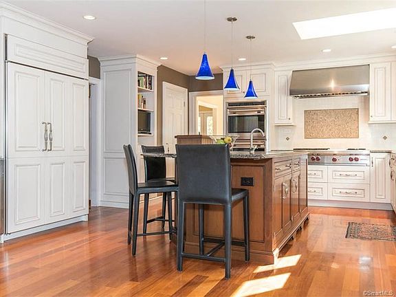 Enjoy your own private oasis in South Cheshire. Situated on 5.6 acres this 2,900 sq ft custom colonial boasts quality construction and lovely detail. Highlights include 2x6 construction, over-sized Thermopane Anderson Windows, geo-thermal heating and garage doors with direct drive openers. The Award Winning expansive open Kitchen boasts Woodmode kitchen cabinets, granite counters, wet bar, top of the line appliances including a 48 inch Wolf commercial grade 6 burner gas stove with built in infrared griddle, Wolf double ovens, Sub-zero refrigerator, and dishwasher. The adjacent FR has a fireplace, skylights, HW floors and access to the expansive deck and backyard. There is also a sought after first floor bedroom with full bath. The 2nd floor Master has a fabulous new bath and access to the charming sitting room/office. The over-sized windows and doors and expansive deck bring the Nature close to home. A true Vermont setting!!