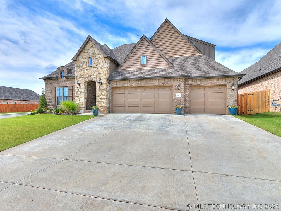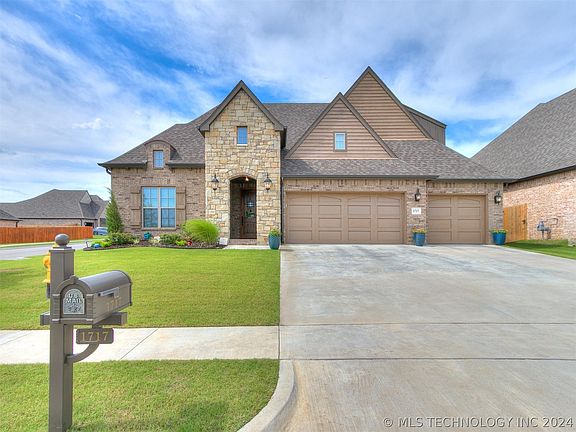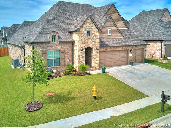Time is of the essence with this incredible 4-bedroom, 3.5-bathroom home that perfectly blends elegance, comfort, and practicality. From the moment you step inside, the rich wood floors, granite countertops, and custom cabinetry create an atmosphere of luxury, while the stunning stone fireplace adds a cozy touch. The main floor is thoughtfully designed with a private study that doubles as a second suite, offering flexibility to suit your needs. Upstairs, the spacious layout continues with two large bedrooms, a full bath, and a game room, providing plenty of room to relax and entertain. Energy efficiency is built into every corner of this home, with spray-foam insulation, a 16 SEER AC, and a 95% efficient furnace, ensuring comfort year-round while saving on energy costs. Outside, the extended A-frame patio and privacy fence create the perfect setting for gatherings, all while enjoying peaceful pond views in a gated neighborhood with a nearby playground. Located in the highly sought-after Jenks School District and minutes from Tulsa Hills and Tulsa Premium Outlets, this home offers unmatched convenience. The seller is even including a one-year home warranty for added peace of mind.