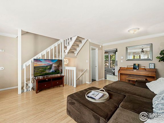 Discover this beautifully maintained 2-bedroom 2-bathroom townhouse, ideally situated just steps away from the scenic Spring Creek Trail. Currently operating as a highly profitable medium-term rental, this property presents a fantastic investment opportunity, with the seller offering it fully furnished for a seamless transition. The upstairs bedrooms share a spacious full bath, with a bedroom featuring a cozy balcony, perfect for enjoying your morning coffee or evening relaxation. Enjoy Colorado's beautiful weather from the covered front porch or your private balcony. The in-unit laundry ensures convenience with washer and dryer included, while electric baseboard heating allows for adjustable comfort in every room. The attached, oversized 1-car garage offers ample space for a workshop, bike storage & more. Spring Creek Trail is just outside your door, providing easy access to Rolland Moore & Spring Canyon parks, CSU, & a variety of shopping & dining options. Off-street parking is available in addition to the attached garage. HOA & community have made enhancements including: New roof installed in 2018, Siding repaired & repainted in 2020, Parking lot resurfaced in 2023, $21,000 grant awarded in 2021 to replace the sprinkler system & add 400 new plants, including some edible varieties, enhancing the community's aesthetic & sustainability. This townhouse offers an unbeatable blend of comfort, convenience & investment potential in a sought-after location. Don't miss the chance to own this gem in the heart of Colorado!