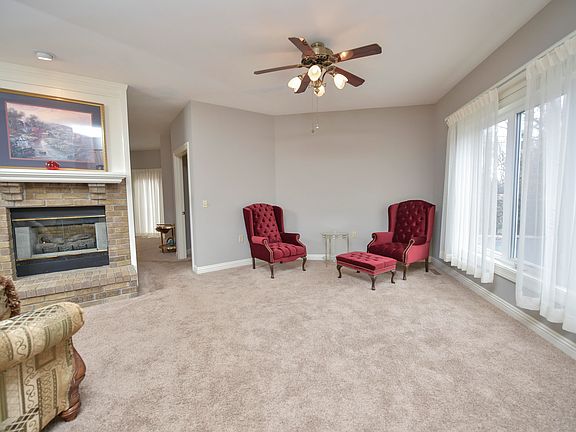 This is a rare find in a sought after gated 55+community! An end unit with extra privacy! This Home has an open floor plan with the entire home freshly painted! And, It is move in ready with no wallpaper! One of the larger one level living units with a beautiful see through fire place and with a two car garage. It also has an insta Hot Hot water at every faucet and a new garage door and opener! HOA provides gated community living: fencing, gates, mowing, inground sprinklers, snow removal, 24 hour smoke detection, common area, trees maintained, and access to community center. This home is well maintained. This is an area where preference is given to move from this independent living to more assistance when needed.