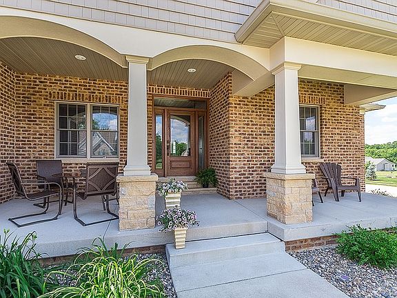 This beautiful custom ranch is located right across from Springbrook Country Club with a beautifully landscaped yard and large front porch. The main living area has hardwood floors, an office/study, pocket bar and also features a fireplace with a 12 foot coffered ceiling. Also on the main level are 2 bedrooms, 2 full baths, a half bath and laundry. The kitchen features custom cabinetry, hardwood floors, granite counters, stainless steel appliances, pantry and breakfast bar. The beautiful 700 square foot master suite is located on the main level and features carpet floors, tray ceiling, separate sitting area and a custom walk-in closet. The master bath includes heated tile floors, marble counters, jetted tub and an 4x8 tiled shower. The finished walkout lower level features 2 bedrooms, full bath, half bath, workout area and tons of storage. Also includes a lower level golf cart garage and equipment storage area. Outside you'll find a composite deck and large sunroom with another fireplace overlooking the well manicured yard.