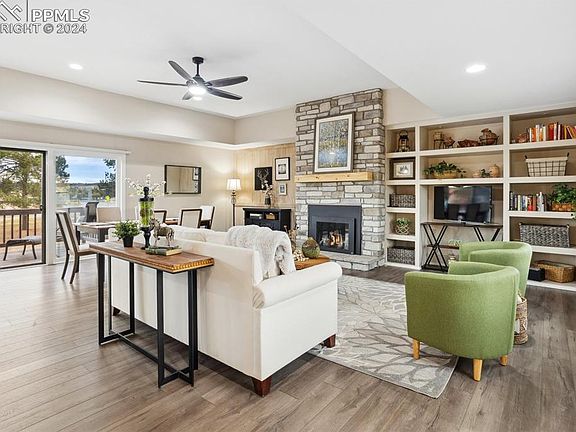 Welcome to this stunning 3-bedroom, 2-bathroom townhome, featuring a spacious 2-car garage, nestled in the desirable Woodmoor community. This meticulously maintained residence is designed with thoughtful extras that enhance both functionality and comfort. As you step inside, you'll notice the abundance of natural light, thanks to the extra windows that brighten the living space. The newly remodeled kitchen is a chef's dream, complete with high-quality cabinetry, timeless white quartz countertops, and a newly added exhaust vent for all your culinary creations. The service door on the main level provides convenient access to the beautiful open space outside. The living room is elegantly organized with custom built-ins, creating a cozy yet stylish atmosphere. Enjoy seamless indoor-outdoor living with easy access to a freshly stained large deck, perfect for entertaining or relaxing. The double sliders/wall of glass offer expansive views of the serene surroundings, making it a perfect spot to unwind. Located within walking distance of Lewis Palmer Elementary School, this townhome provides quick access to I-25, schools, grocery stores, libraries, and pharmacies. Plus, enjoy picturesque views, including the iconic Palmer Lake star visible from your deck. This property is a must-see, offering a perfect blend of comfort, style, and convenience. Schedule your visit today!
