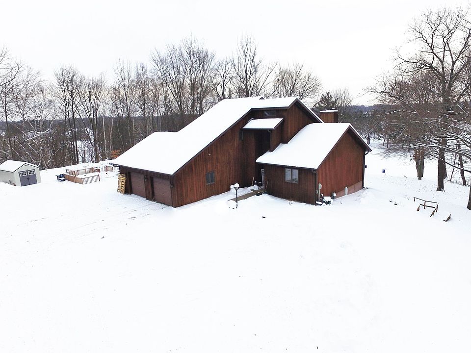 Experience your winter in this beautiful home on the McCaslin Brook Golf Course. This stunning 3 bedroom, 3 bathroom property overlooking the 11th hole. The living room features a cozy stone fireplace and vaulted ceilings that extend up to the 2nd-floor loft. The kitchen has tiled floors and backsplash, while the dining room and sunroom offer ample windows. The main level also includes two bedrooms, a full bath, and a laundry room. On the upper level, you'll find a master bedroom with a private bathroom, a walk-in closet, and a private deck that offers breathtaking views. The lower level is a walkout that includes an office, a large bathroom, and a workout area. As a bonus, you'll receive a complimentary one-year membership to the golf course.