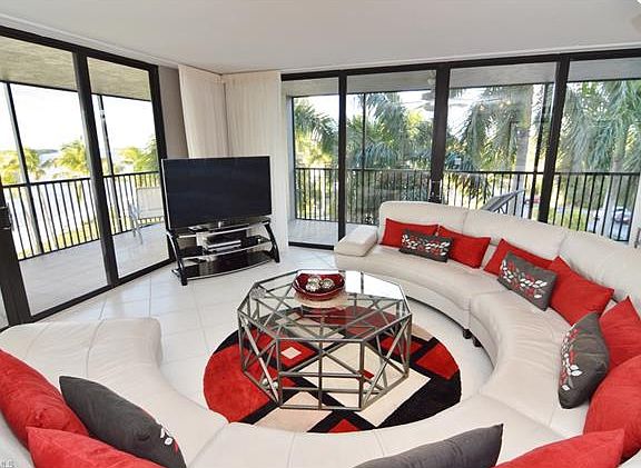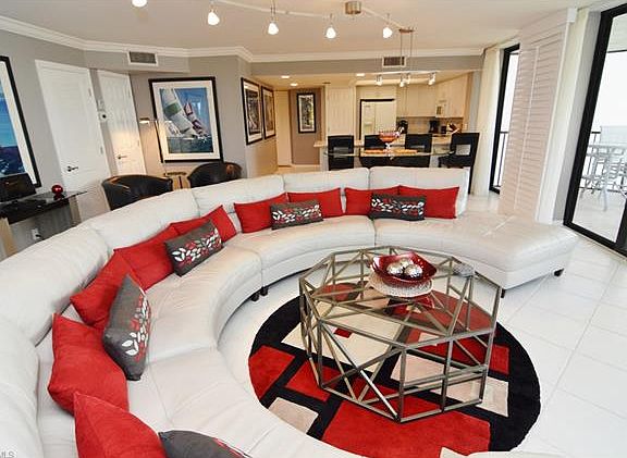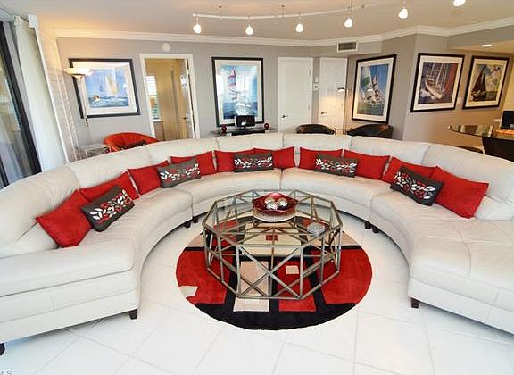 This property is located at the Sanibel Harbour Resort directly before you go overh the Sanibel Island causeway. Excellent location with fabulous water views and nightly sunsets views. Conveniently located next to the Sanibel Harbour Marriott Resort & Spa offering a relaxed atmosphere with six distinctive restaurants and lounges to choose from; a Spa and Salon for Health, Relaxation, and Rejuvenation; Expansive Fitness Facility and Tennis Courts and Instruction memberships available. A full service luxury resort. Contemporary and Modern styled Corner Unit overlooking the waters of San Carlos Bay. This condo rental at Sanibel Harbour Resort features a large, top quality TV in the living room, with state of the art electronics throughout. U-Shaped leather sofa with ample seating and Pub style dining table and bar stools. Master bedroom has a King size bed and the Guest bedroom has two Twin beds.