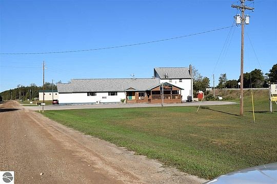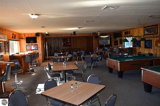 Restaurant/Bar. Completely redone. 2 Bdr, 1 Ba apartment upstairs. 4 Bdr, 2 Ba "Lodge" included in the sale. Class "C" liquor license. Dance floor, pool tables, shuffle board, kitchen equipment and most supplies included. Covered, outdoor seating with pool table included. Ample parking and good visibility from M-115. 16-camera security system. Wall unit A/C.