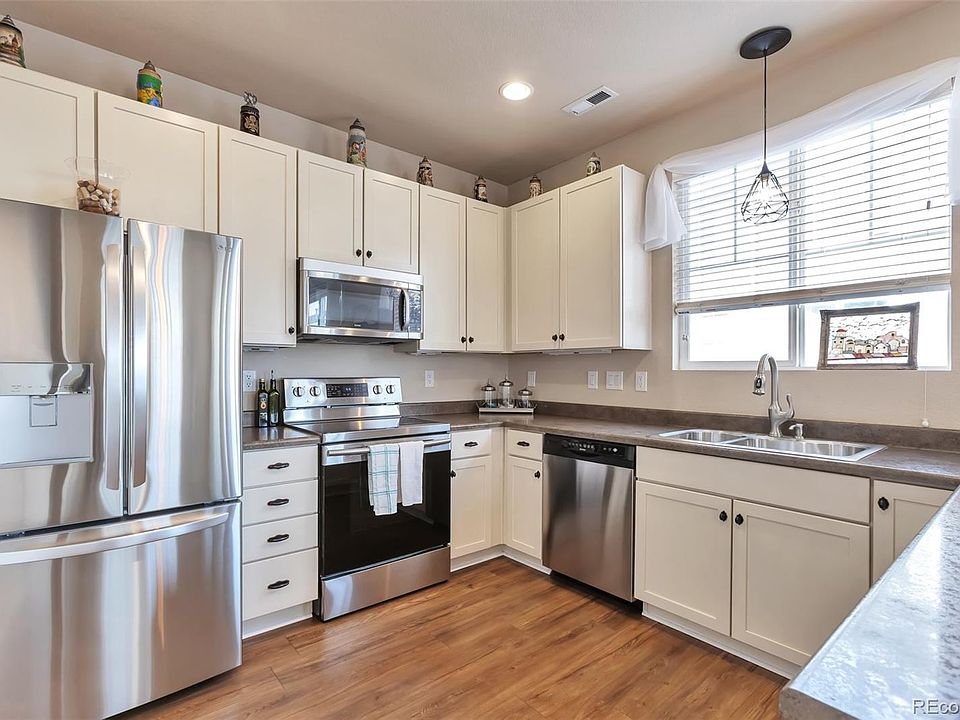 Welcome to your home in Parker, Colorado! Nestled within a serene community, this spacious property with 4 bedrooms/3 baths boasts comfort at every turn. There is one bedroom on the main level and 3 additional bedrooms upstairs. This clean and well-maintained home features new floors on the main, and new carpet upstairs, ensuring a modern and elegant ambiance that welcomes you from the moment you enter. You will enjoy a beautiful contemporary kitchen, making meal preparation a delightful experience. With an oversized 2-car garage, you'll have ample space for your vehicles and additional storage needs, providing the utmost convenience for your busy lifestyle. Plus, this property stands out as the largest sq ft available in the community, offering plenty of space and privacy for you and your loved ones. Located in the charming town of Parker, Douglas County has top-rated schools; you'll also enjoy the perfect blend of tranquility and accessibility. From scenic parks to bustling shopping centers, everything you need is just moments away. New in 2023: flooring, refrigerator, tile in baths, and hot water heater. Don't miss the opportunity to make this remarkable property your own. Schedule a viewing today. You will receive a Buyer's Home Warranty for peace of mind.